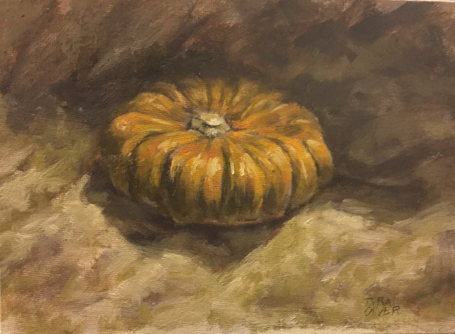 The above is a progression shot of a pumpkin study.  Because it is best to narrow ones focus when engaging in work of this nature, this still life painting serves a few functions: