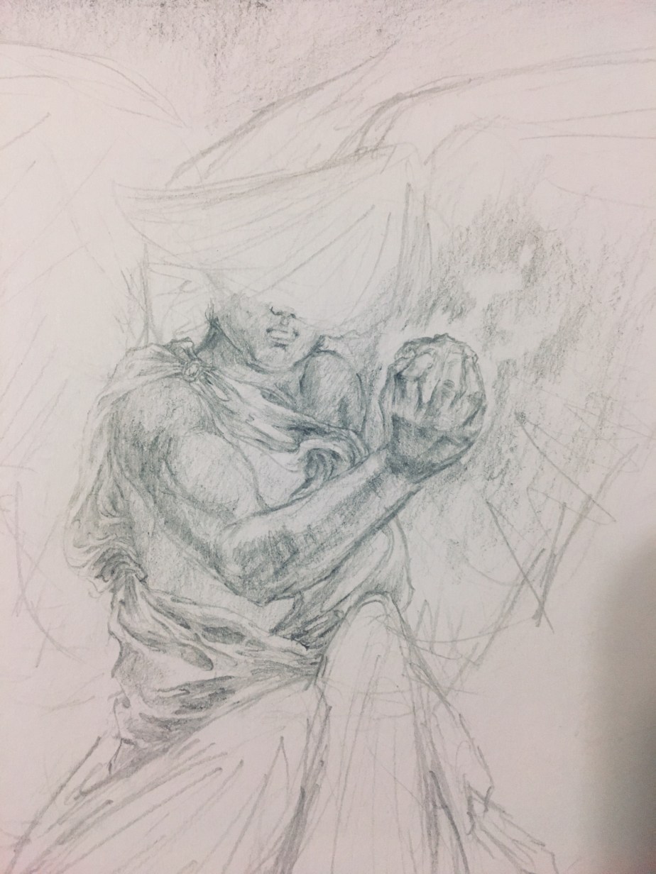I have recently been working on a drawing depicting the scene in which the Biblical prophet Isaiah enters the throne room of God, sees His majesty and declares himself and his people unworthy. In this vision, a seraphim anoints Isaiah as a prophet with a hot coal from the alter of God.